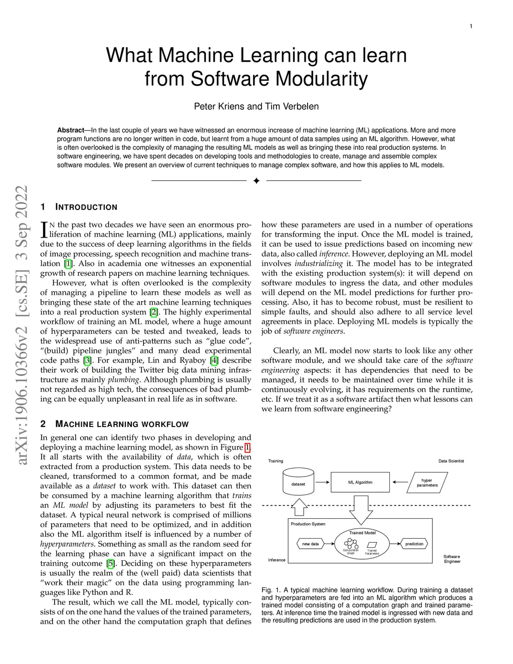 In the last couple of years we have witnessed an enormous increase of machine learning (ML) applications. More and more program functions are no longer written in code, but learnt from a huge amount of data samples using an ML algorithm. However, what is often overlooked is the complexity of managing the resulting ML models as well as bringing these into a real production system. In software engineering, we have spent decades on developing tools and methodologies to create, manage and assemble complex software modules. We present an overview of current techniques to manage complex software, and how this applies to ML models.