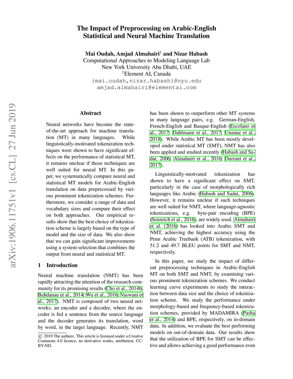 The Impact of Preprocessing on Arabic-English Statistical and Neural