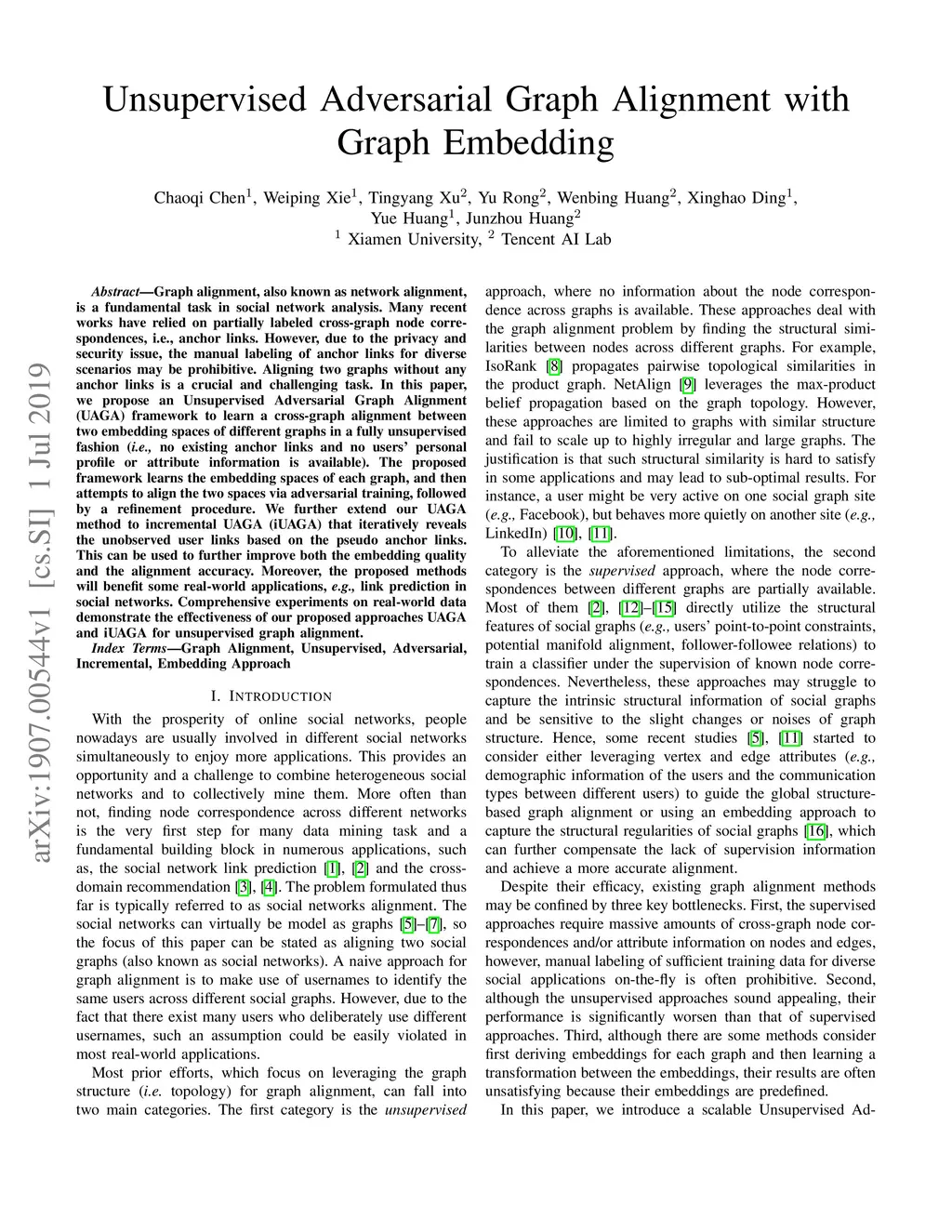 Unsupervised Adversarial Graph Alignment with Graph Embedding