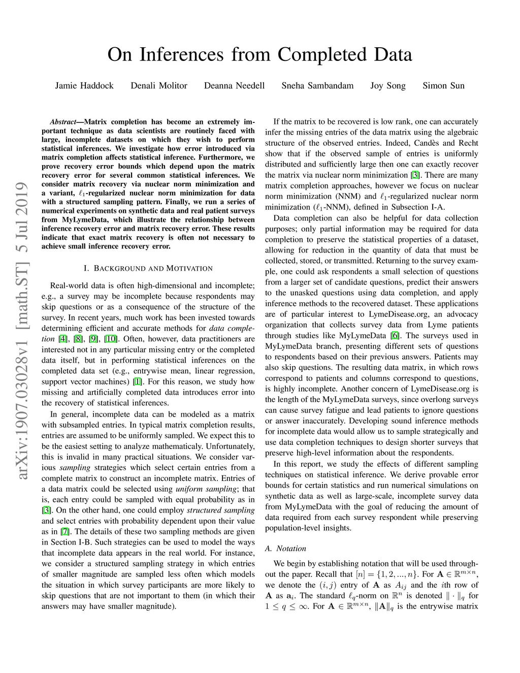On Inferences from Completed Data