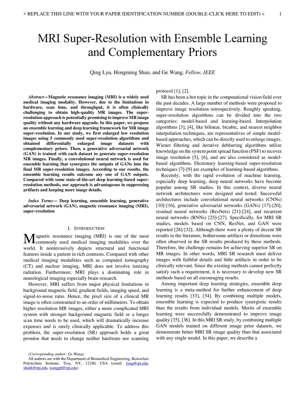 MRI Super-Resolution with Ensemble Learning and Complementary Priors