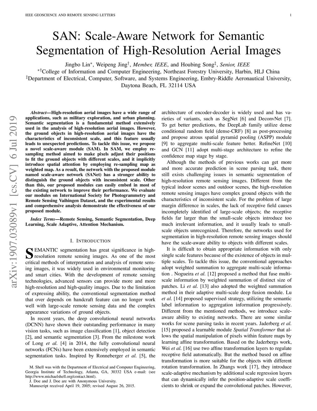 SAN: Scale-Aware Network for Semantic Segmentation of High-Resolution