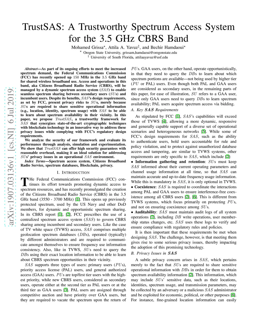 TrustSAS: A Trustworthy Spectrum Access System for the 3.5 GHz CBRS Band
