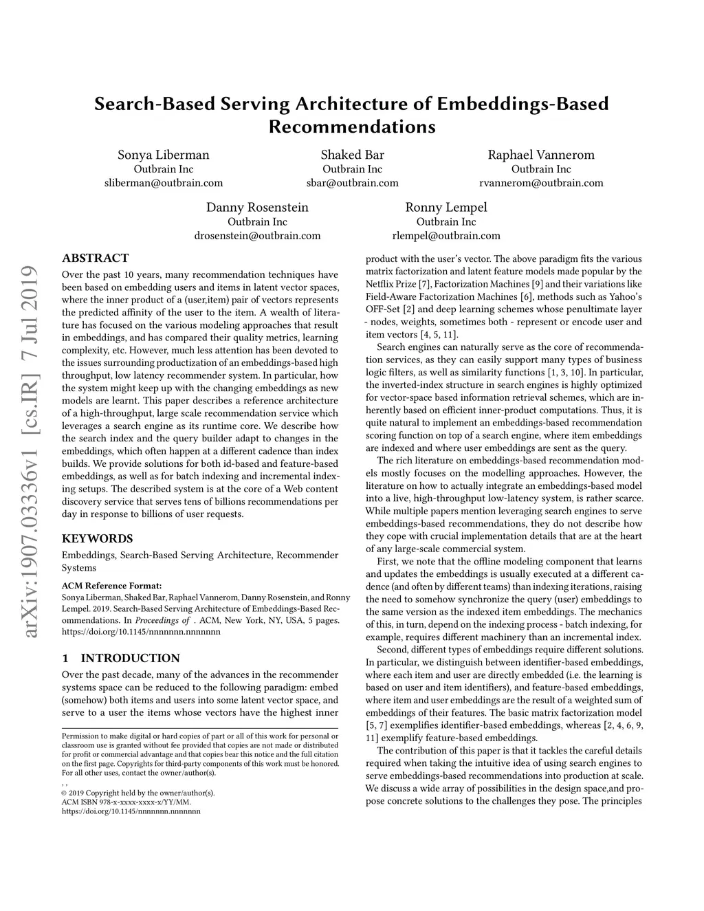 Search-Based Serving Architecture of Embeddings-Based Recommendations