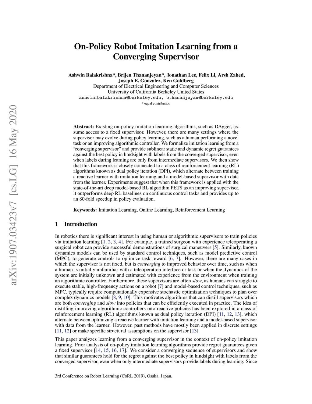Conference on Robot Learning (CoRL), 2019