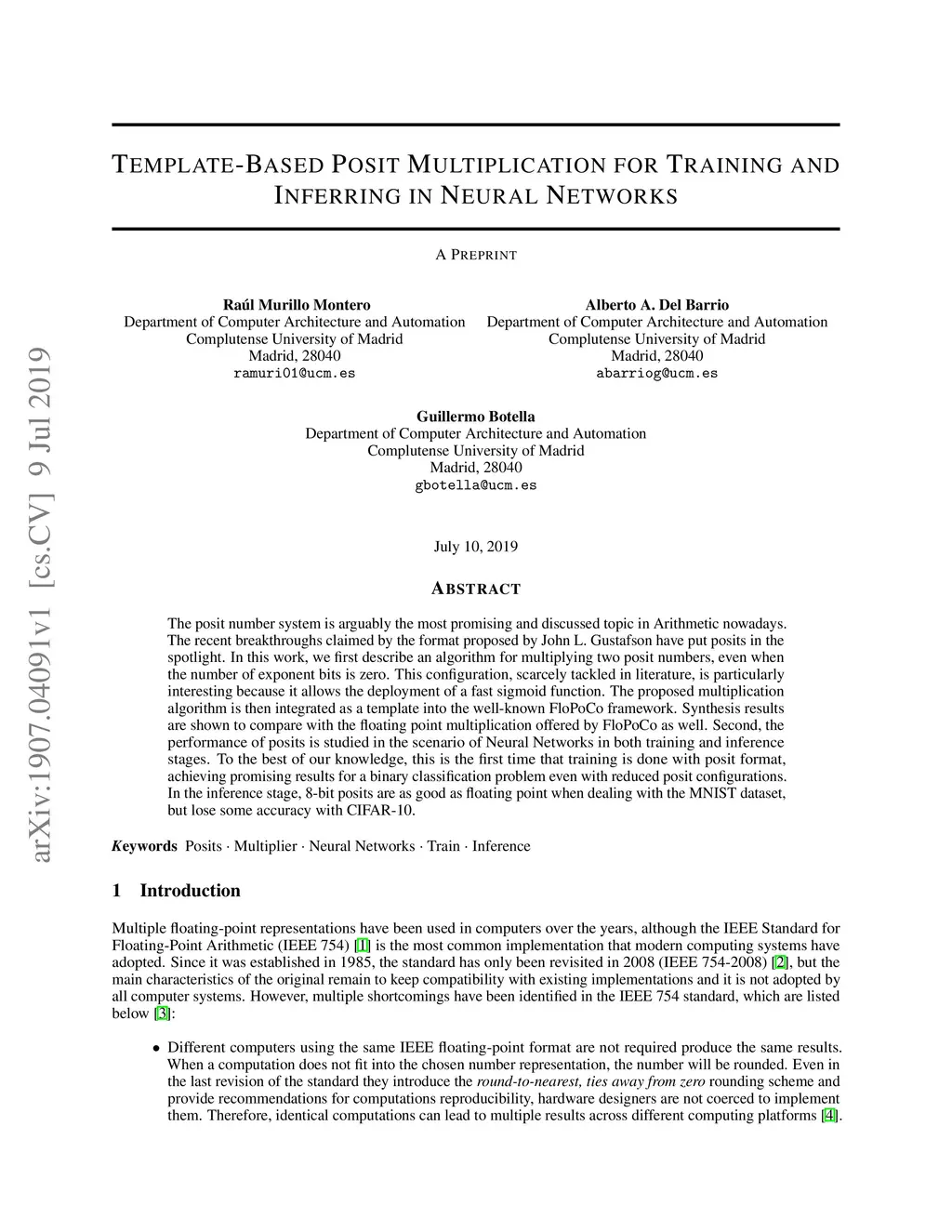 Template-Based Posit Multiplication for Training and Inferring in Neural