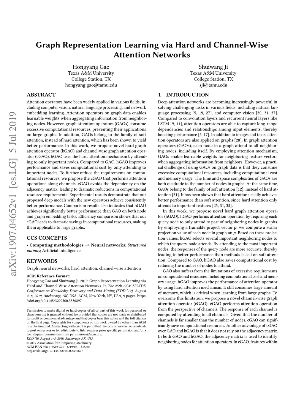 Graph Representation Learning via Hard and Channel-Wise Attention