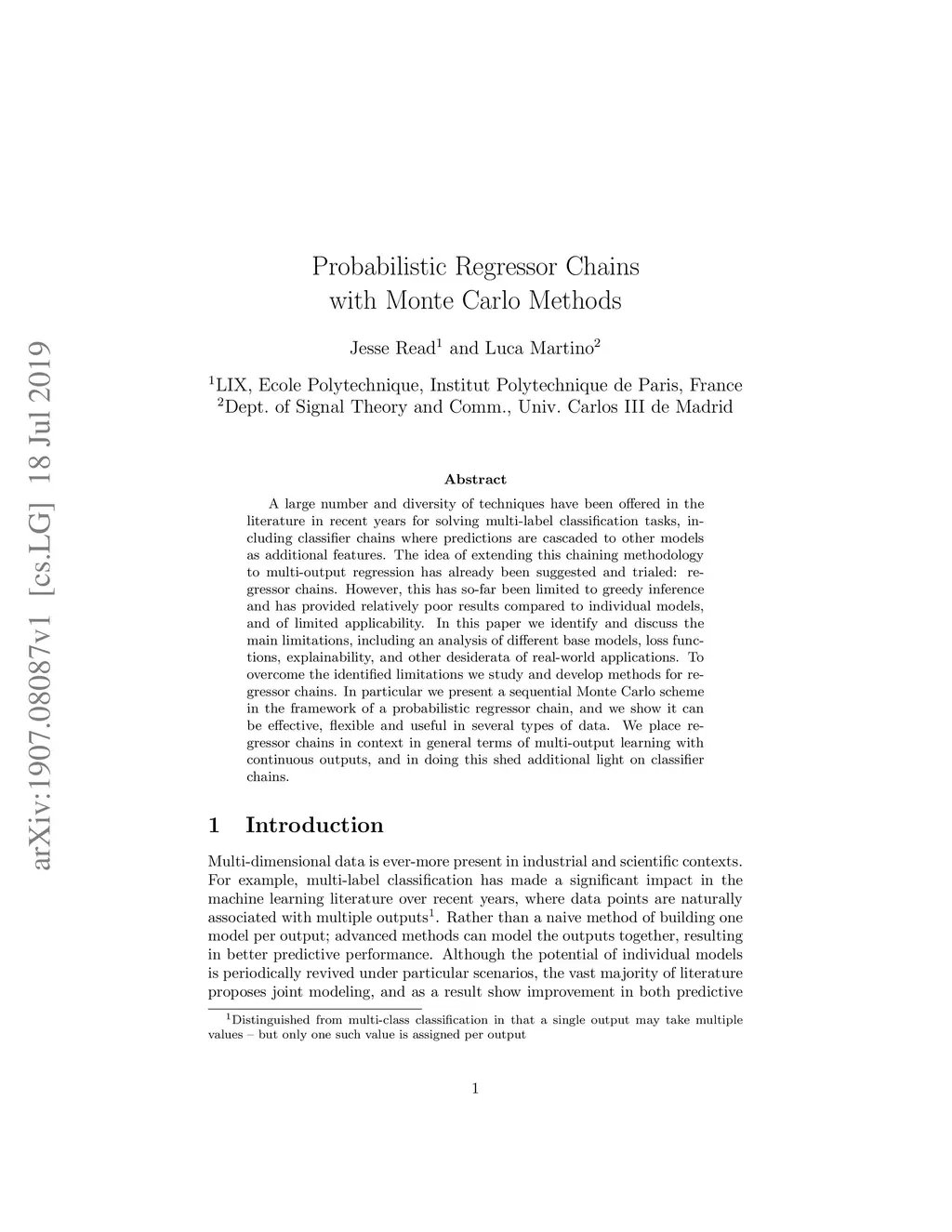 Probabilistic Regressor Chains with Monte Carlo Methods