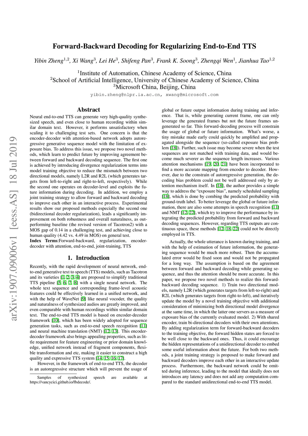 Forward-Backward Decoding for Regularizing End-to-End TTS