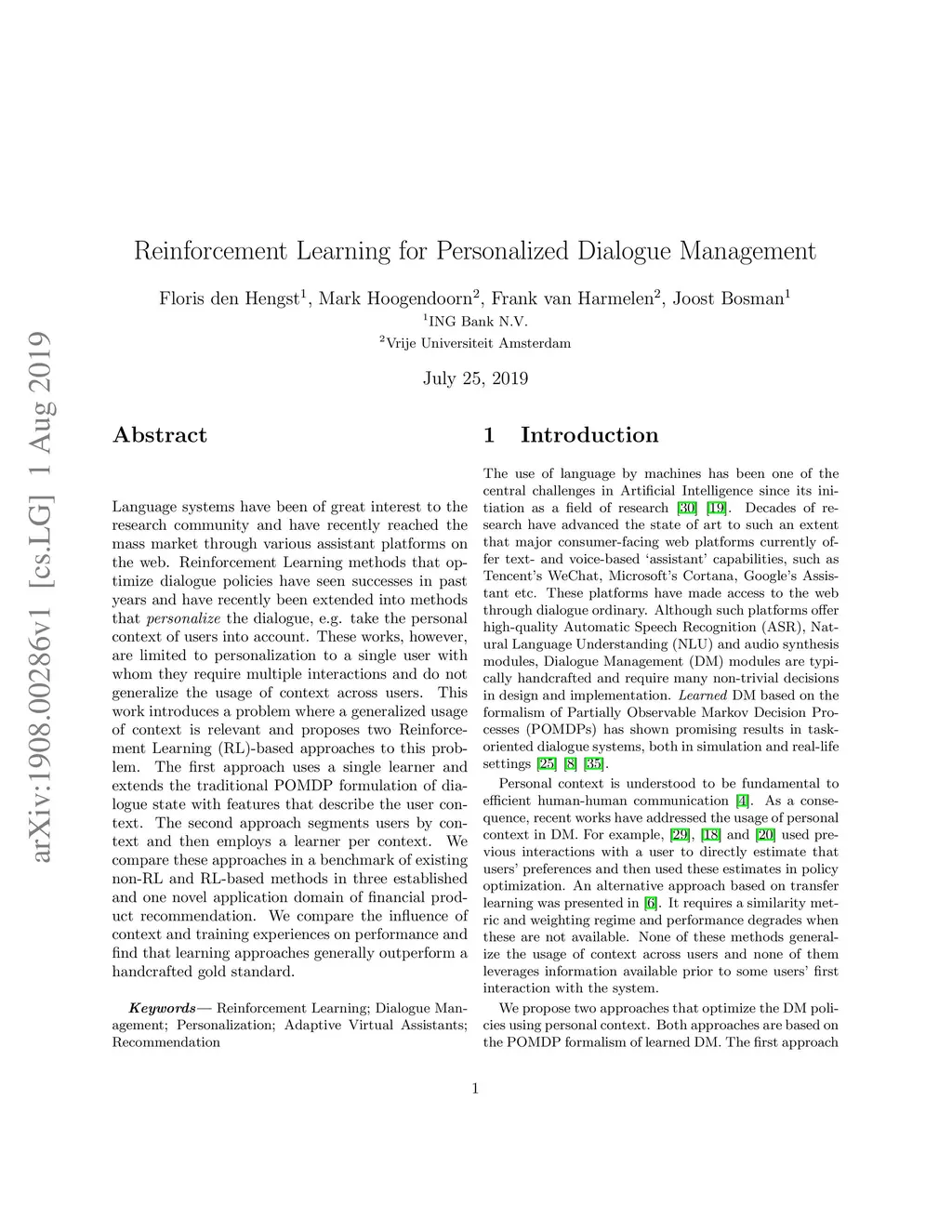 Reinforcement Learning for Personalized Dialogue Management