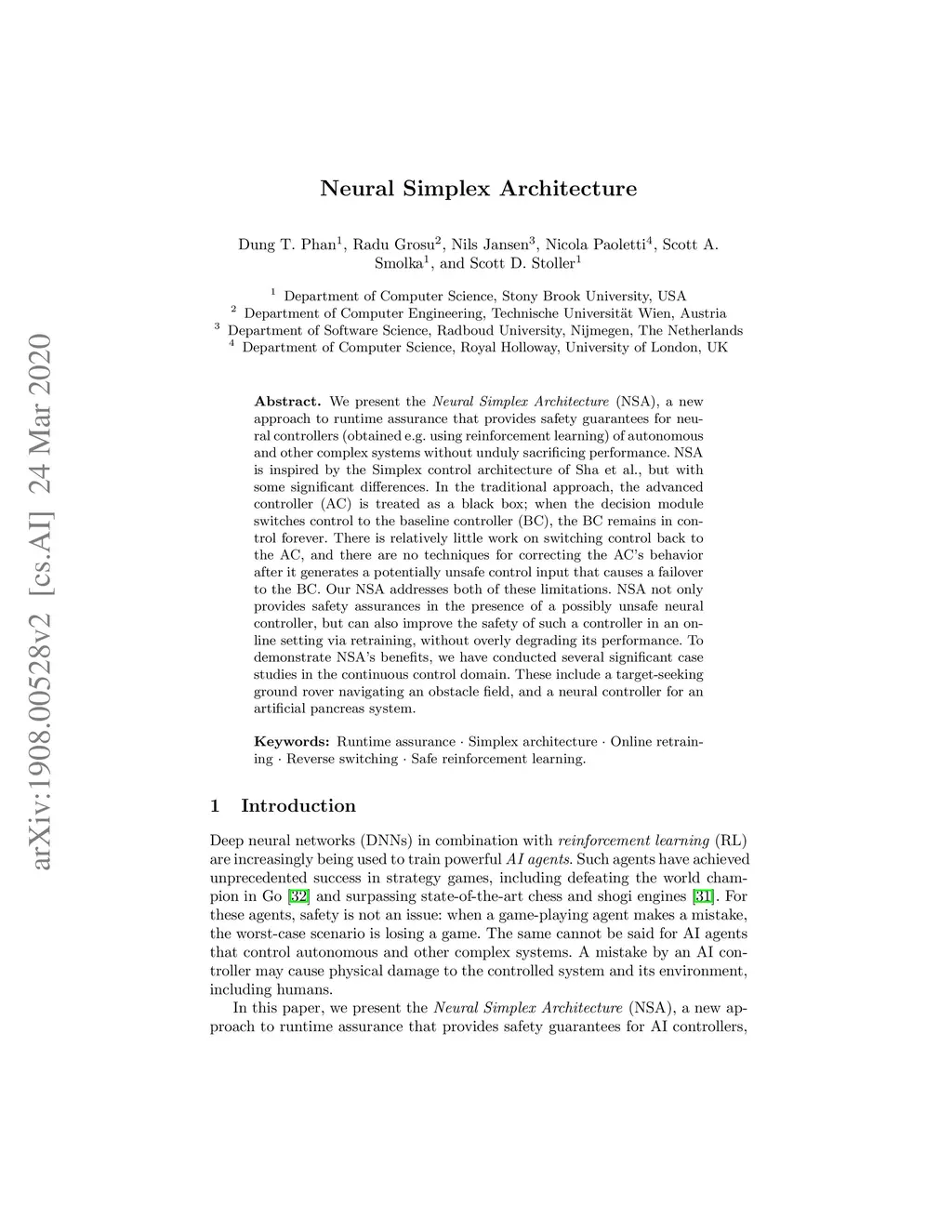 We present the Neural Simplex Architecture (NSA), a new approach to runtime assurance that provides safety guarantees for neural controllers (obtained e.g. using reinforcement learning) of autonomous and other complex systems without unduly sacrificing performance. NSA is inspired by the Simplex control architecture of Sha et al., but with some significant differences. In the traditional approach, the advanced controller (AC) is treated as a black box; when the decision module switches control to the baseline controller (BC), the BC remains in control forever. There is relatively little work on switching control back to the AC, and there are no techniques for correcting the AC's behavior after it generates a potentially unsafe control input that causes a failover to the BC. Our NSA addresses both of these limitations. NSA not only provides safety assurances in the presence of a possibly unsafe neural controller, but can also improve the safety of such a controller in an online setting via retraining, without overly degrading its performance. To demonstrate NSA's benefits, we have conducted several significant case studies in the continuous control domain. These include a target-seeking ground rover navigating an obstacle field, and a neural controller for an artificial pancreas system.