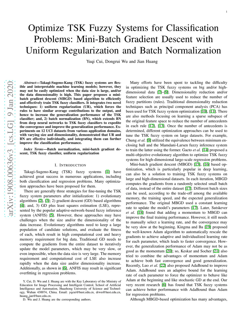Optimize TSK Fuzzy Systems for Classification Problems: Mini-Batch