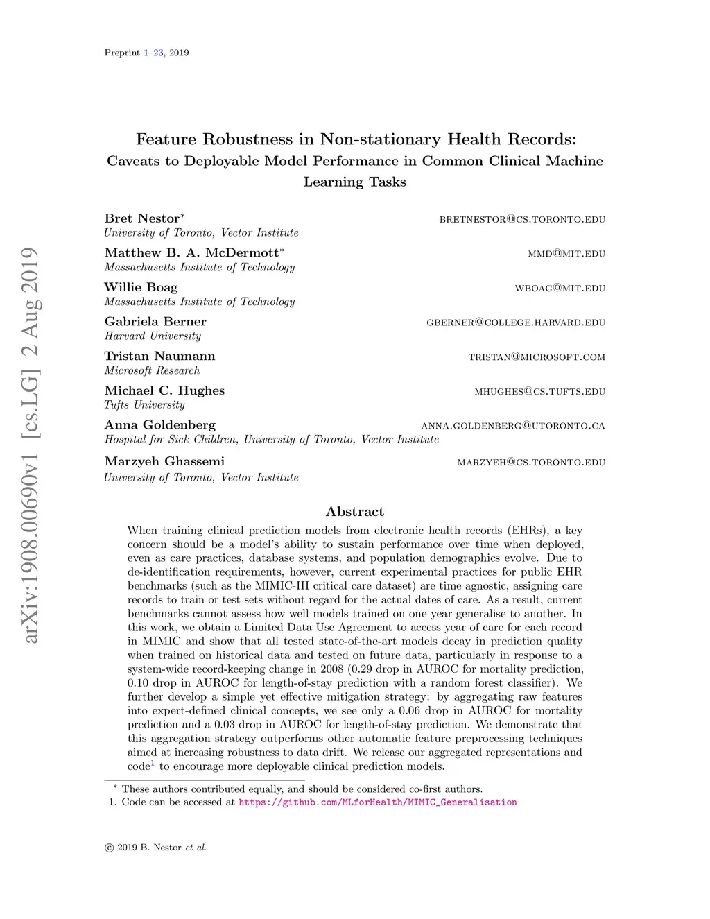 Feature Robustness in Non-stationary Health Records: Caveats to