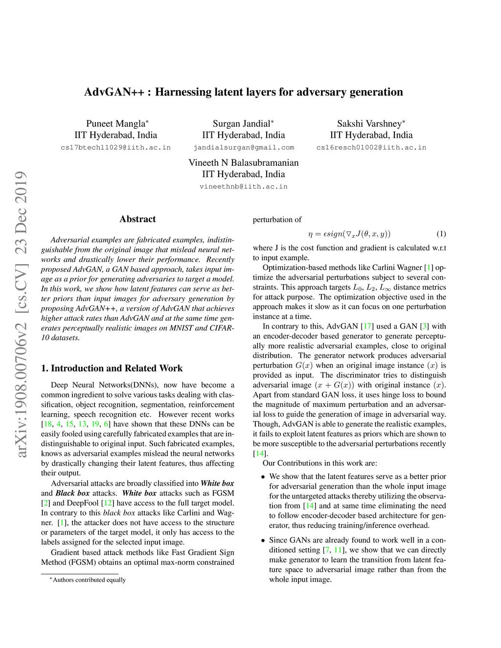 AdvGAN++ : Harnessing latent layers for adversary generation