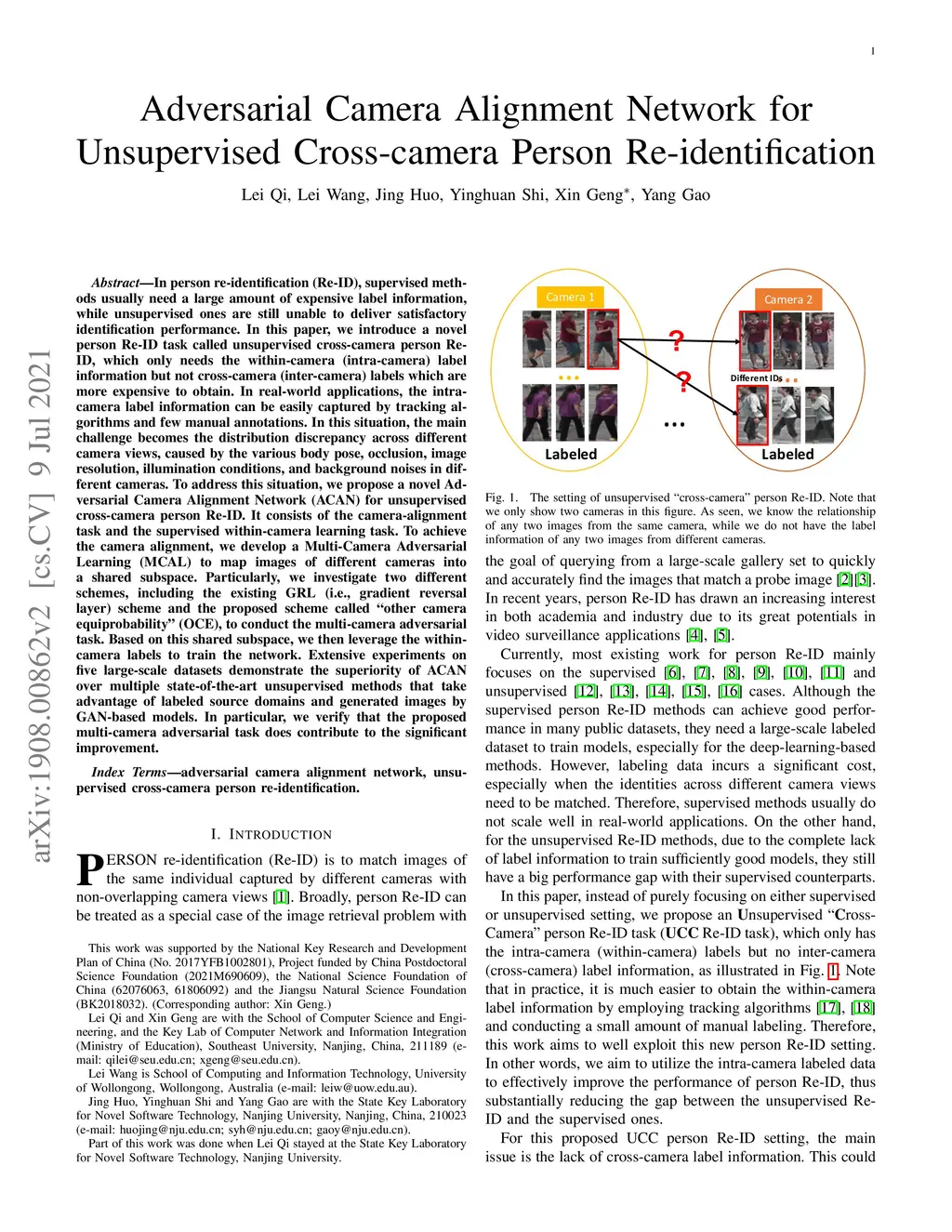 Adversarial Camera Alignment Network for Unsupervised Cross-camera
