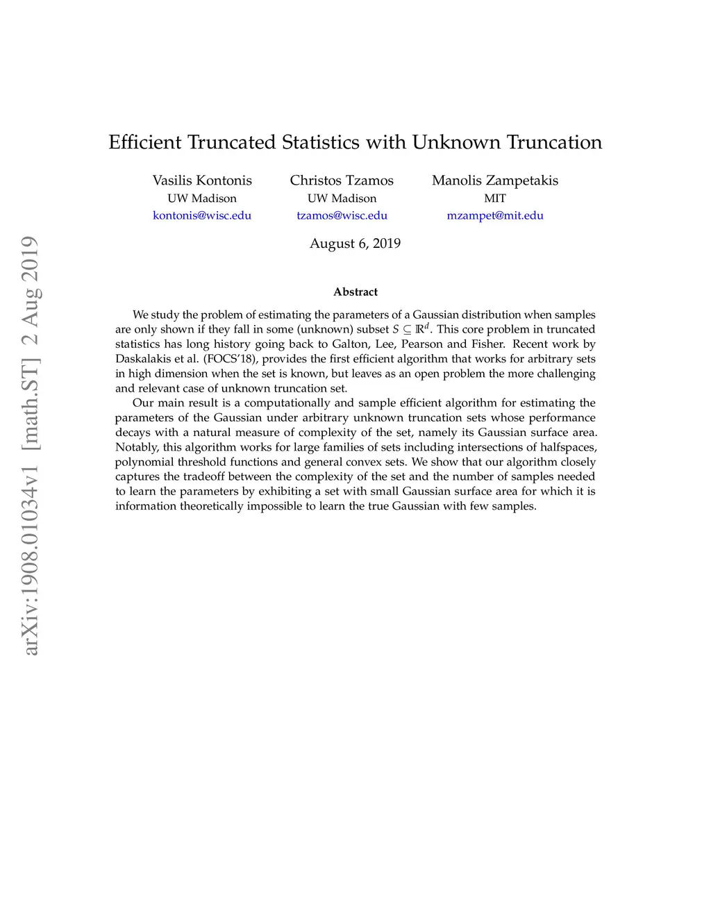 We study the problem of estimating the parameters of a Gaussian distribution when samples are only shown if they fall in some (unknown) subset . This core problem in truncated statistics has long history going back to Galton, Lee, Pearson and Fisher. Recent work by Daskalakis et al. (FOCS'18), provides the first efficient algorithm that works for arbitrary sets in high dimension when the set is known, but leaves as an open problem the more challenging and relevant case of unknown truncation set. Our main result is a computationally and sample efficient algorithm for estimating the parameters of the Gaussian under arbitrary unknown truncation sets whose performance decays with a natural measure of complexity of the set, namely its Gaussian surface area. Notably, this algorithm works for large families of sets including intersections of halfspaces, polynomial threshold functions and general convex sets. We show that our algorithm closely captures the tradeoff between the complexity of the set and the number of samples needed to learn the parameters by exhibiting a set with small Gaussian surface area for which it is information theoretically impossible to learn the true Gaussian with few samples.