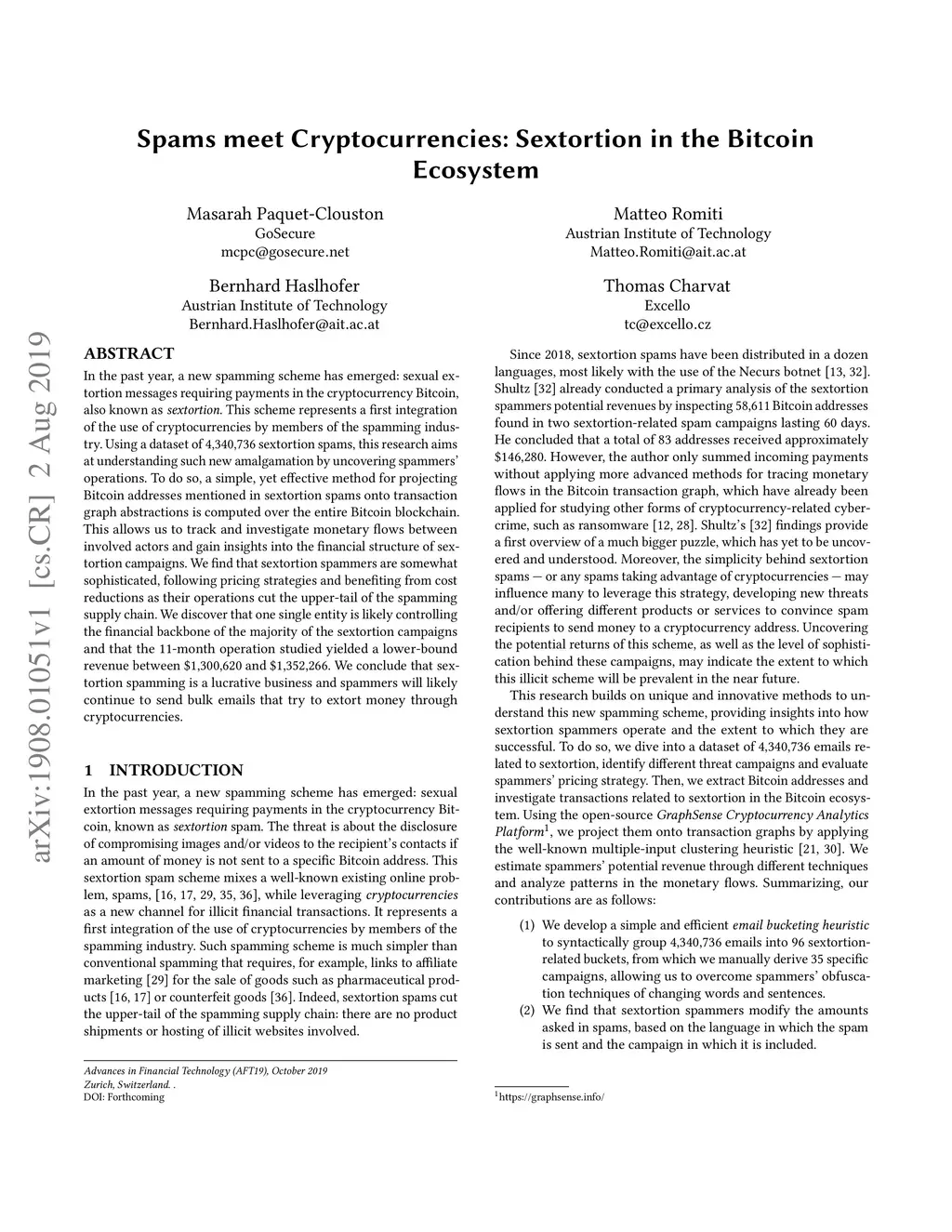 Spams meet Cryptocurrencies: Sextortion in the Bitcoin Ecosystem