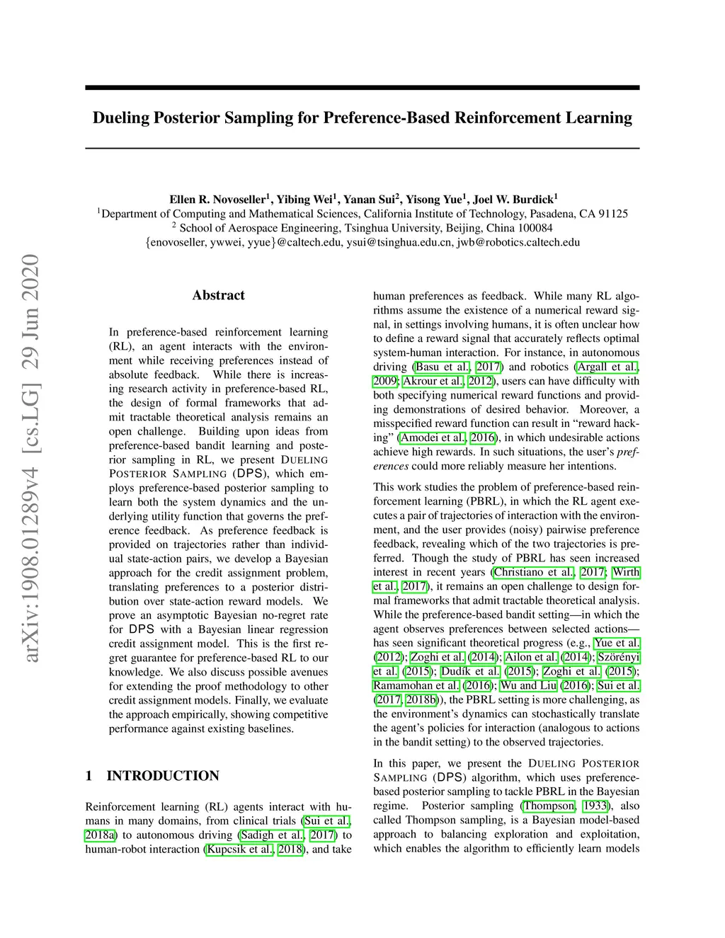 Dueling Posterior Sampling for Preference-Based Reinforcement Learning