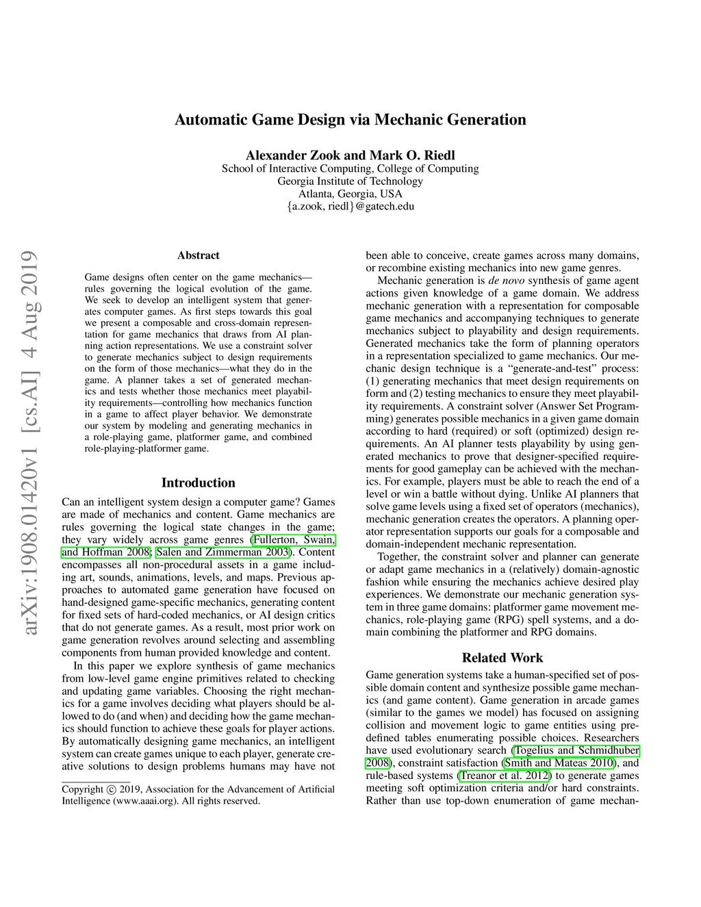 Automatic Game Design via Mechanic Generation