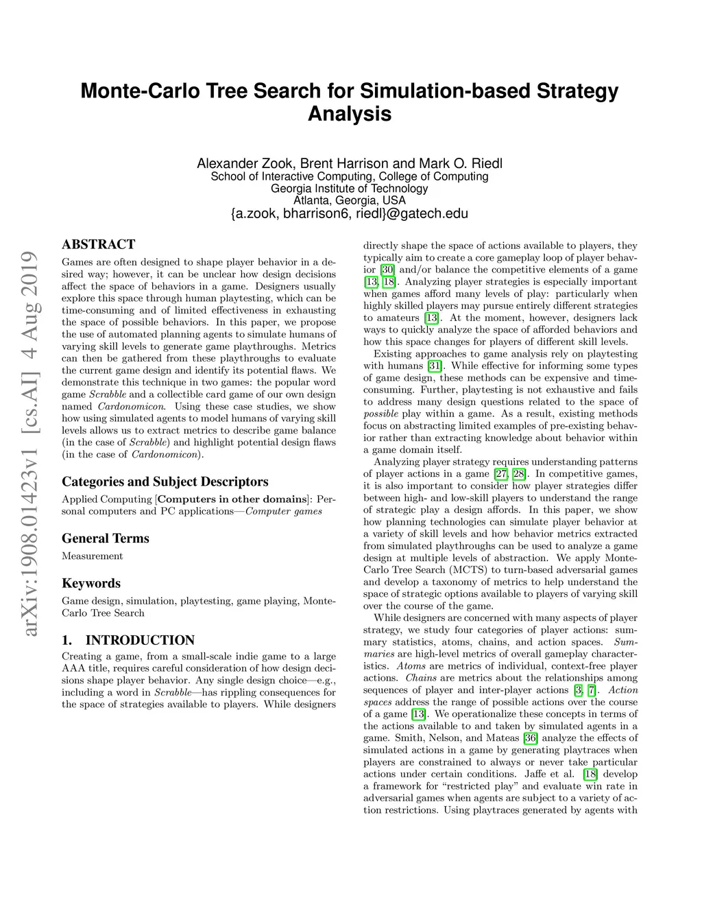 Monte-Carlo Tree Search for Simulation-based Strategy Analysis