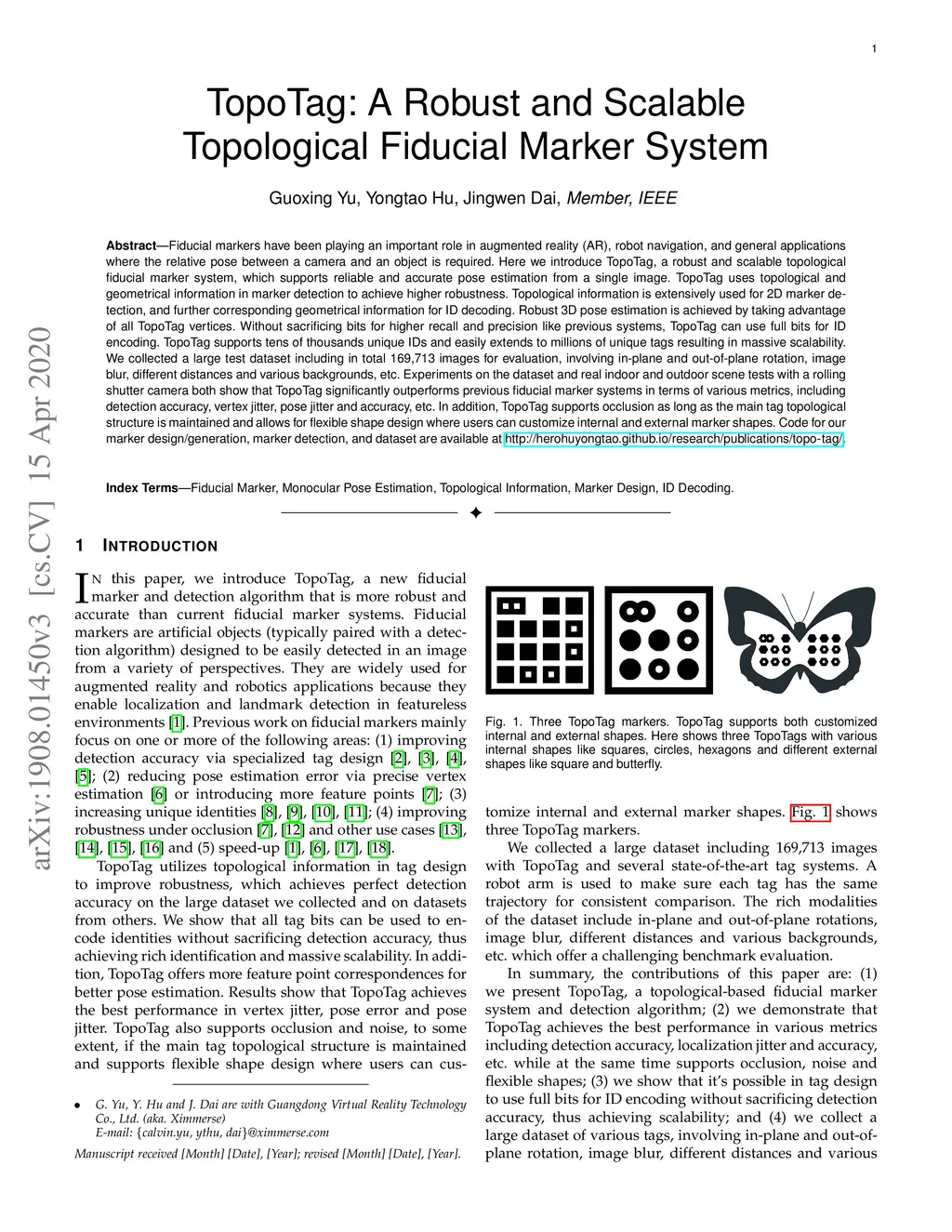 TopoTag: A Robust and Scalable Topological Fiducial Marker System