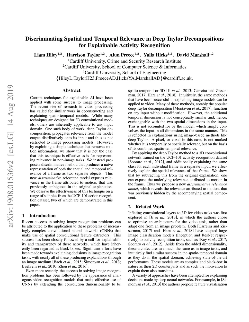 Current techniques for explainable AI have been applied with some success to image processing. The recent rise of research in video processing has called for similar work n deconstructing and explaining spatio-temporal models. While many techniques are designed for 2D convolutional models, others are inherently applicable to any input domain. One such body of work, deep Taylor decomposition, propagates relevance from the model output distributively onto its input and thus is not restricted to image processing models. However, by exploiting a simple technique that removes motion information, we show that it is not the case that this technique is effective as-is for representing relevance in non-image tasks. We instead propose a discriminative method that produces a na\"ive representation of both the spatial and temporal relevance of a frame as two separate objects. This new discriminative relevance model exposes relevance in the frame attributed to motion, that was previously ambiguous in the original explanation. We observe the effectiveness of this technique on a range of samples from the UCF-101 action recognition dataset, two of which are demonstrated in this paper.