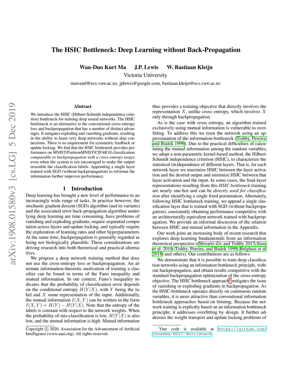 The HSIC Bottleneck: Deep Learning without Back-Propagation