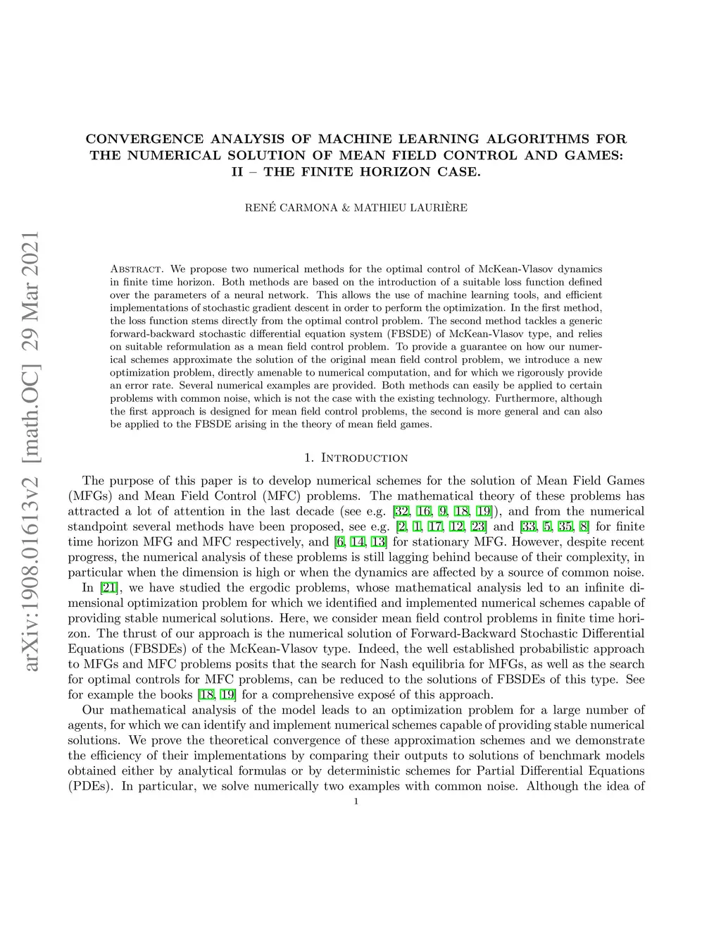 Convergence Analysis of Machine Learning Algorithms for the Numerical