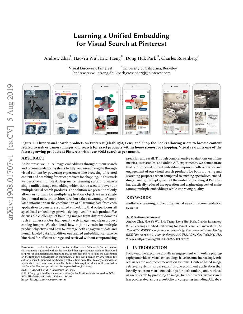 Learning a Unified Embedding for Visual Search at Pinterest