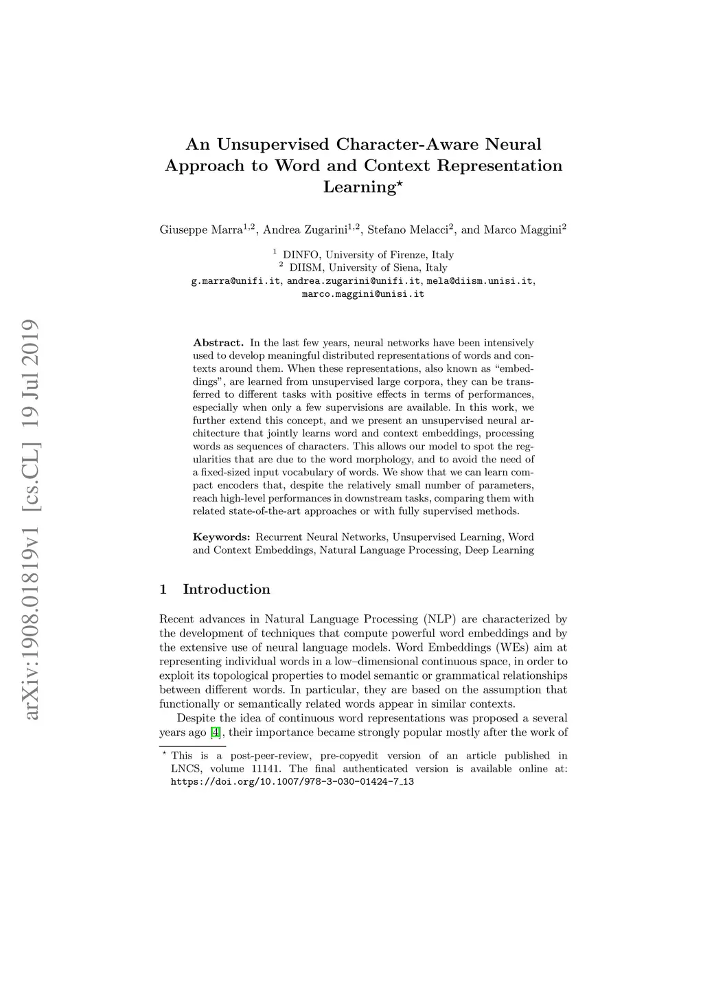 An Unsupervised Character-Aware Neural Approach to Word and Context