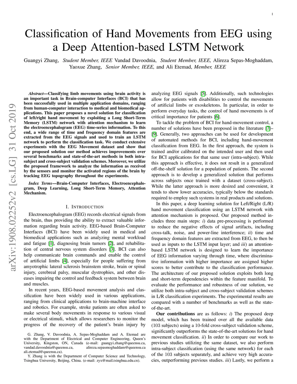 Classification of Hand Movements from EEG using a Deep Attention-based