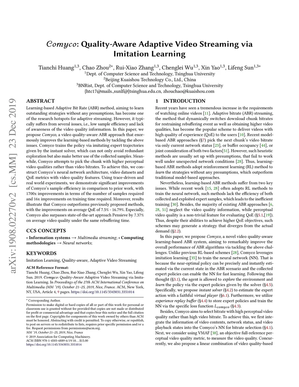 Comyco: Quality-Aware Adaptive Video Streaming via Imitation Learning