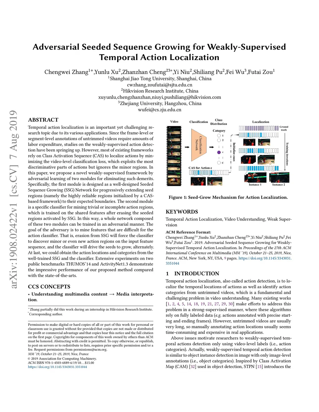 Adversarial Seeded Sequence Growing for Weakly-Supervised Temporal