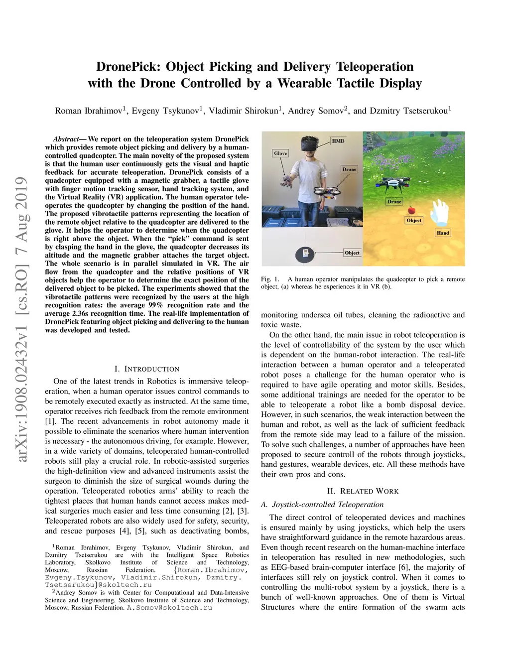 DronePick: Object Picking and Delivery Teleoperation with the Drone