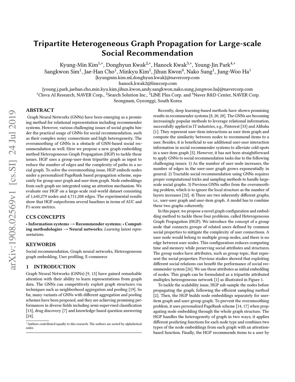Tripartite Heterogeneous Graph Propagation for Large-scale Social