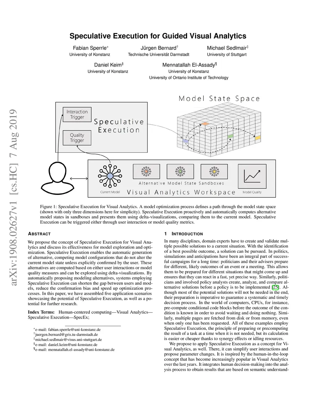 We propose the concept of Speculative Execution for Visual Analytics and discuss its effectiveness for model exploration and optimization. Speculative Execution enables the automatic generation of alternative, competing model configurations that do not alter the current model state unless explicitly confirmed by the user. These alternatives are computed based on either user interactions or model quality measures and can be explored using delta-visualizations. By automatically proposing modeling alternatives, systems employing Speculative Execution can shorten the gap between users and models, reduce the confirmation bias and speed up optimization processes. In this paper, we have assembled five application scenarios showcasing the potential of Speculative Execution, as well as a potential for further research.