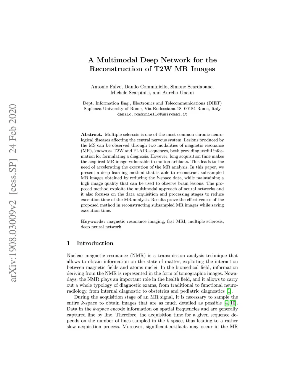 A Multimodal Deep Network for the Reconstruction of T2W MR Images