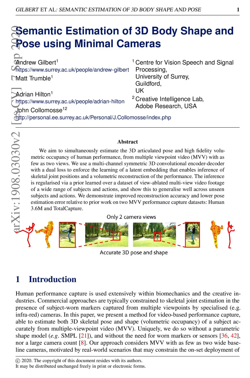 Semantic Estimation of 3D Body Shape and Pose using Minimal Cameras