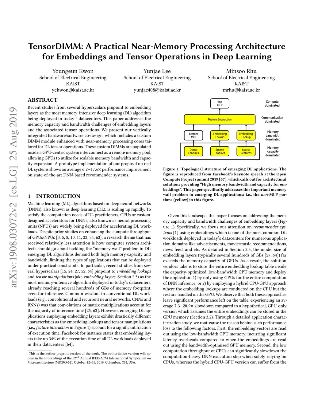 TensorDIMM: A Practical Near-Memory Processing Architecture for