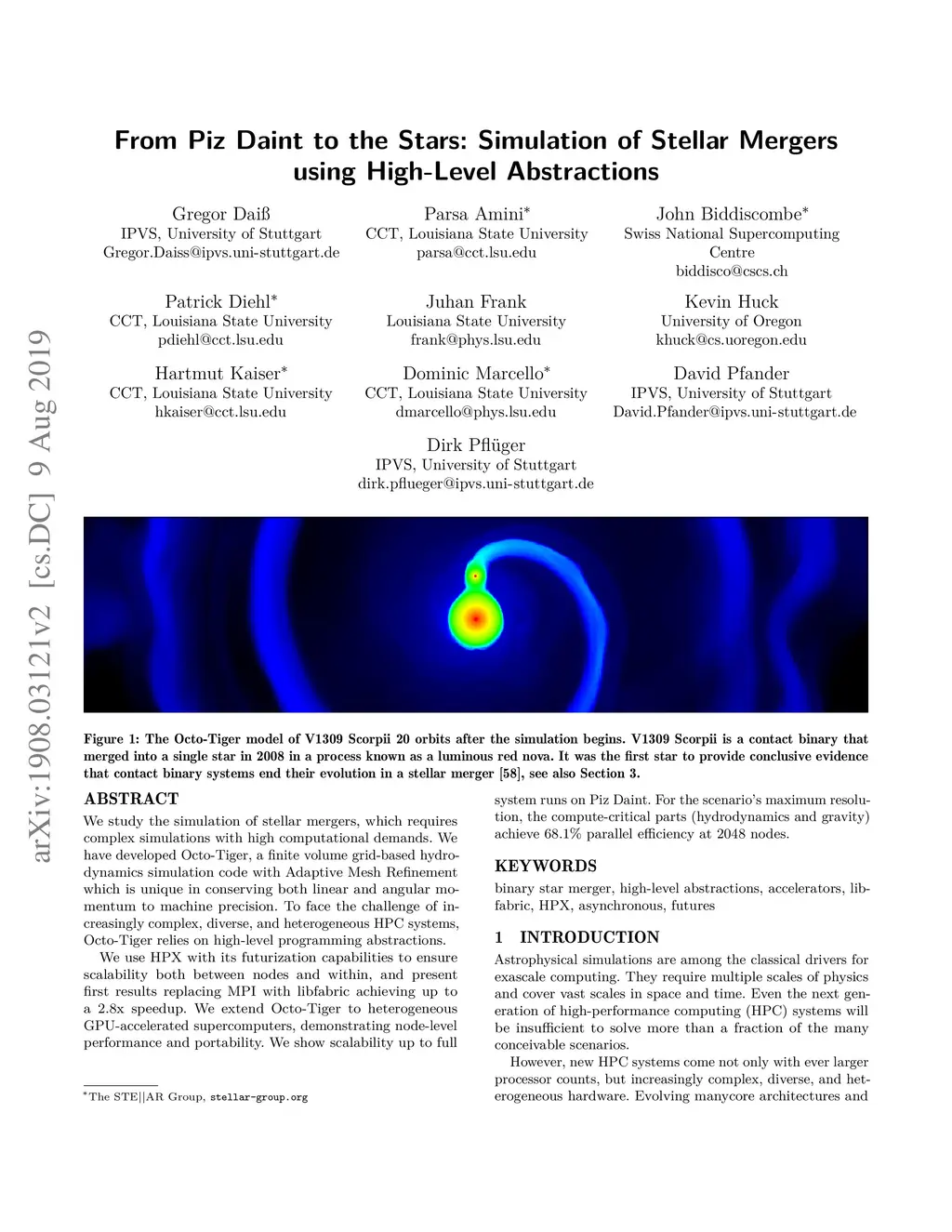 From Piz Daint to the Stars: Simulation of Stellar Mergers using
