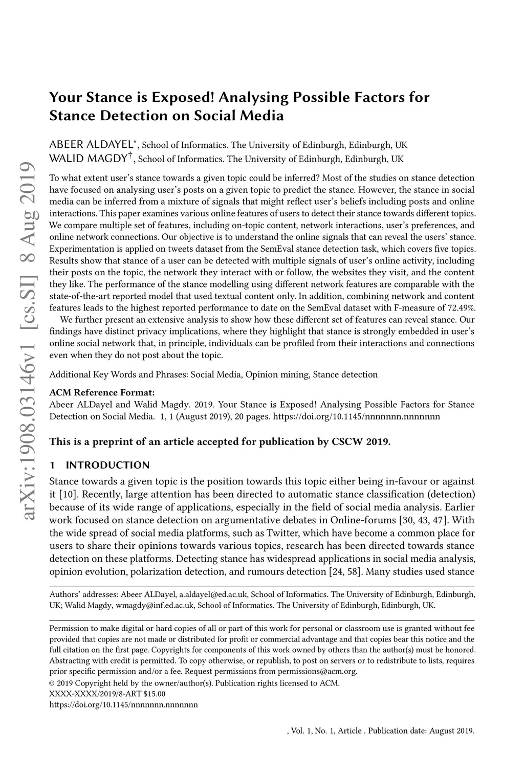 Your Stance is Exposed! Analysing Possible Factors for Stance Detection