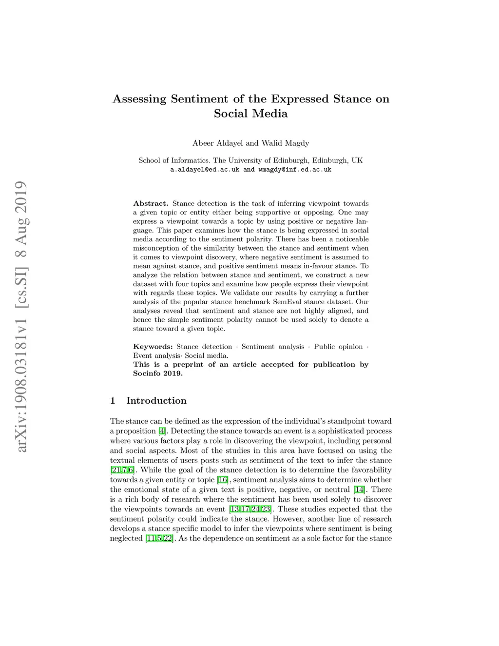 Assessing Sentiment of the Expressed Stance on Social Media