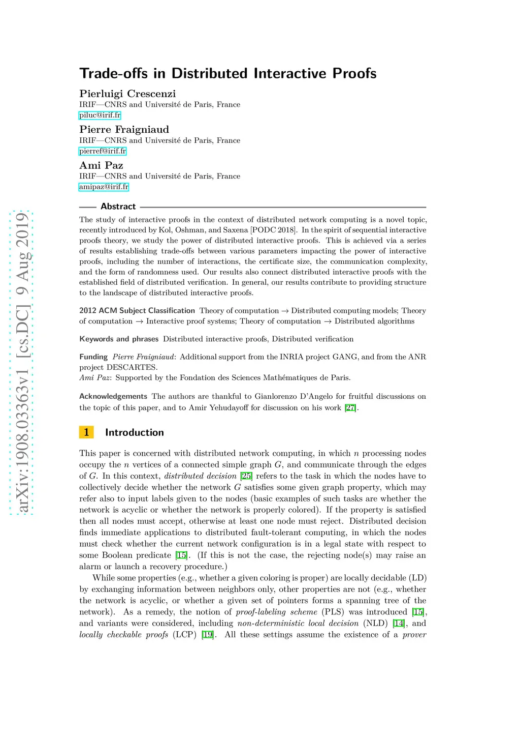 International Symposium on Distributed Computing (DISC), 2019