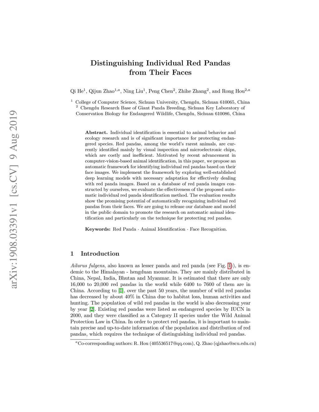 Distinguishing Individual Red Pandas from Their Faces