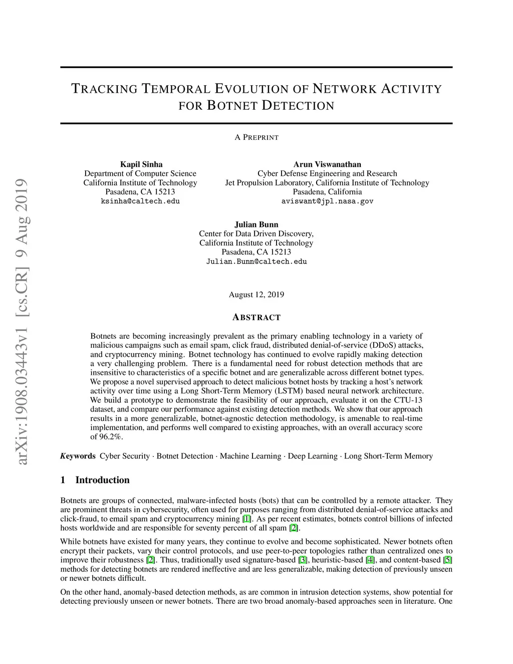 Botnets are becoming increasingly prevalent as the primary enabling technology in a variety of malicious campaigns such as email spam, click fraud, distributed denial-of-service (DDoS) attacks, and cryptocurrency mining. Botnet technology has continued to evolve rapidly making detection a very challenging problem. There is a fundamental need for robust detection methods that are insensitive to characteristics of a specific botnet and are generalizable across different botnet types. We propose a novel supervised approach to detect malicious botnet hosts by tracking a host's network activity over time using a Long Short-Term Memory (LSTM) based neural network architecture. We build a prototype to demonstrate the feasibility of our approach, evaluate it on the CTU-13 dataset, and compare our performance against existing detection methods. We show that our approach results in a more generalizable, botnet-agnostic detection methodology, is amenable to real-time implementation, and performs well compared to existing approaches, with an overall accuracy score of 96.2%.