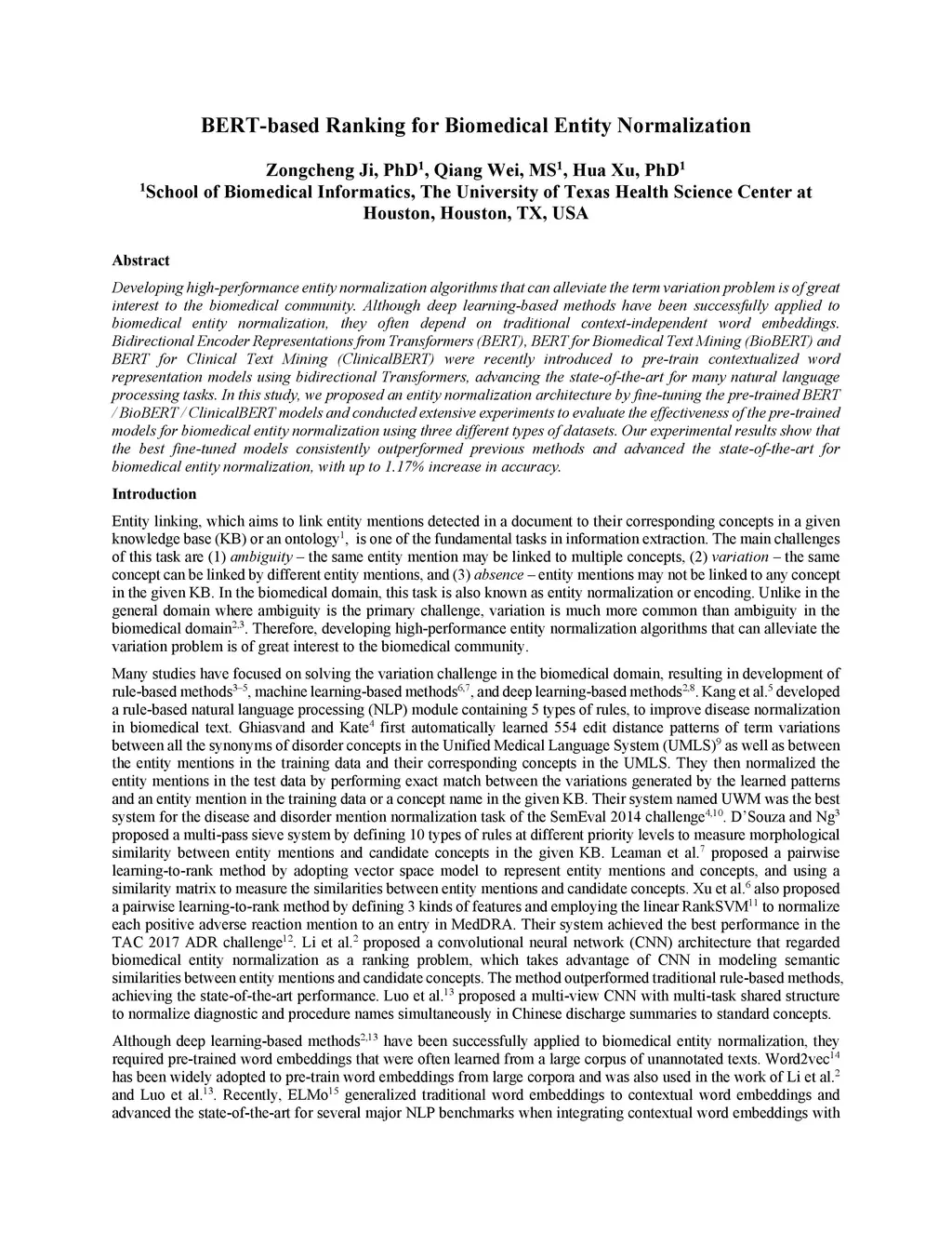BERT-based Ranking for Biomedical Entity Normalization