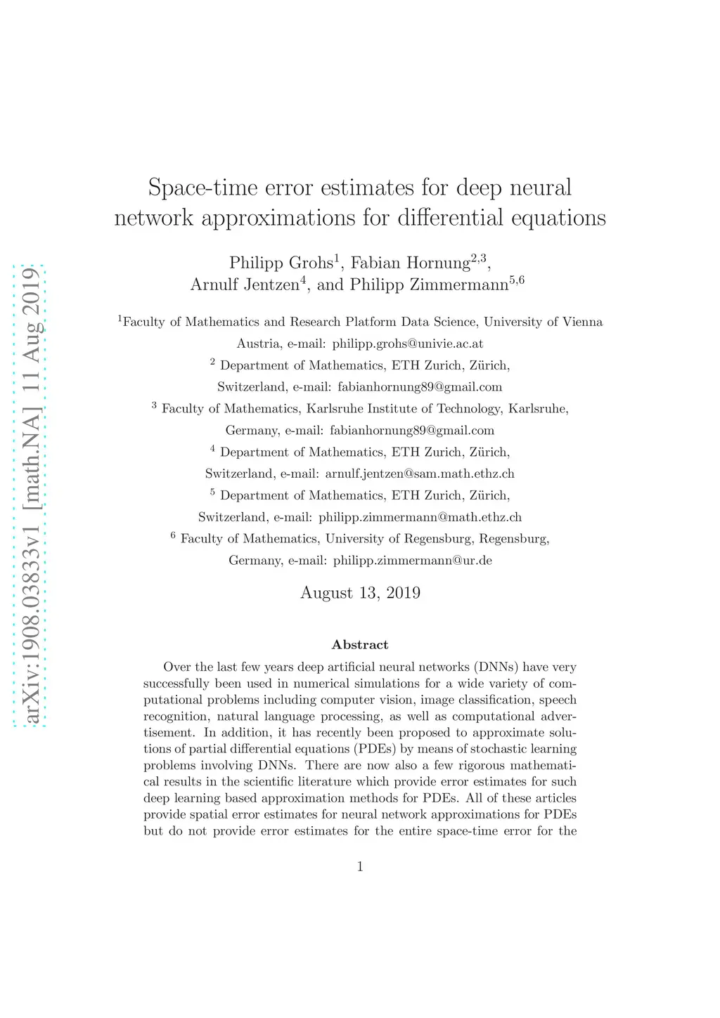 Space-time error estimates for deep neural network approximations for