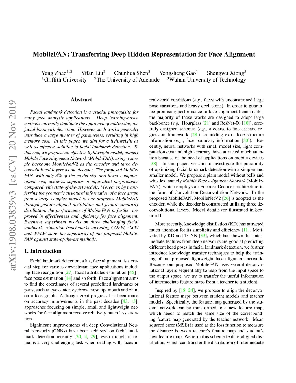 MobileFAN: Transferring Deep Hidden Representation for Face Alignment