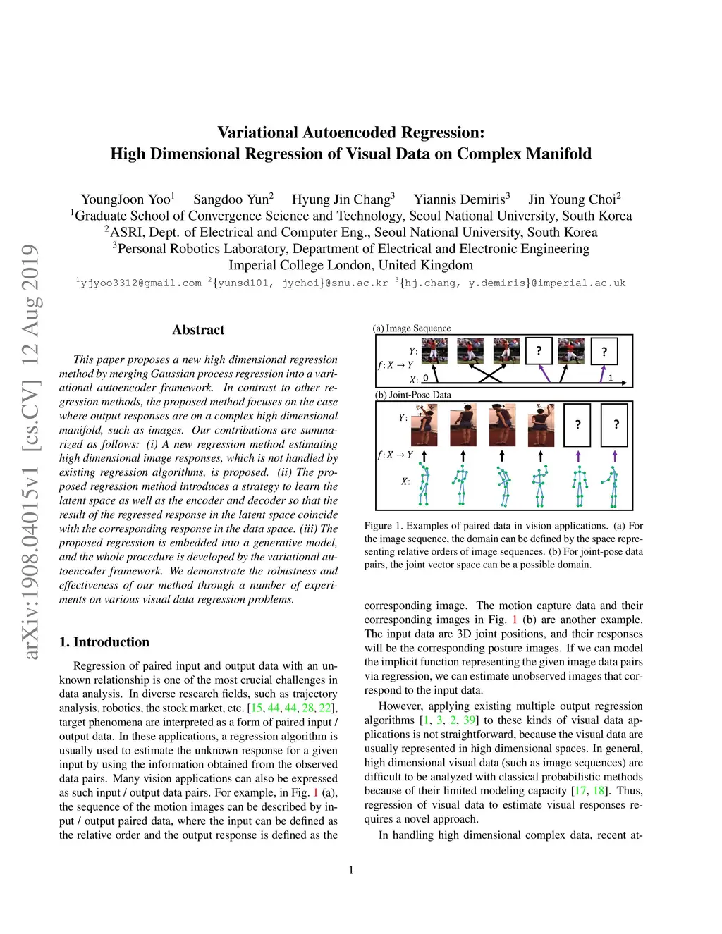 This paper proposes a new high dimensional regression method by merging Gaussian process regression into a variational autoencoder framework. In contrast to other regression methods, the proposed method focuses on the case where output responses are on a complex high dimensional manifold, such as images. Our contributions are summarized as follows: (i) A new regression method estimating high dimensional image responses, which is not handled by existing regression algorithms, is proposed. (ii) The proposed regression method introduces a strategy to learn the latent space as well as the encoder and decoder so that the result of the regressed response in the latent space coincide with the corresponding response in the data space. (iii) The proposed regression is embedded into a generative model, and the whole procedure is developed by the variational autoencoder framework. We demonstrate the robustness and effectiveness of our method through a number of experiments on various visual data regression problems.