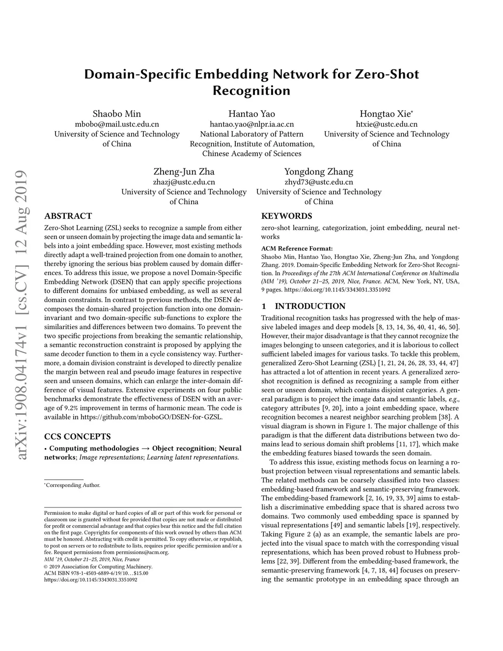 Domain-Specific Embedding Network for Zero-Shot Recognition